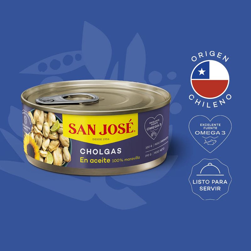 Las Cholgas en Conservas en Aceite 190 Gr - una extracción completamente artesanal permite traer las cholgas como una Excelente Fuente de Proteínas y Omega 3 y se reconocen por su bajo aporte de grasas totales. Pruébalos en su versión al aceite 100% de maravilla.