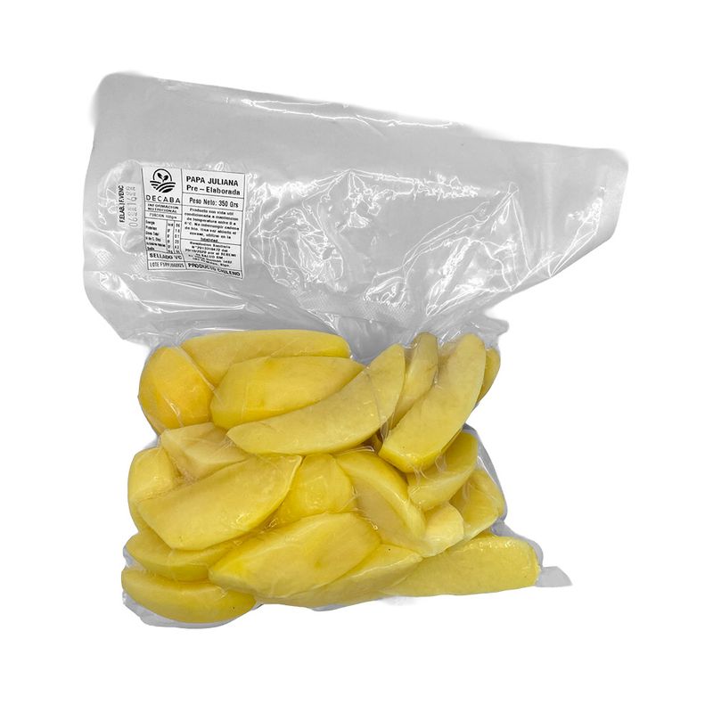 Descubre la comodidad y sabor de nuestra Papa Juliana al Vacío. Presentada en formato de 1 kg, viene lista para cocinar, ahorrándote tiempo en la cocina sin perder calidad ni frescura. Perfecta para salteados, guarniciones, tortillas o preparaciones al horno. Cuidadosamente cortado y envasado al vacío para mantener su frescura, textura y sabor natural.